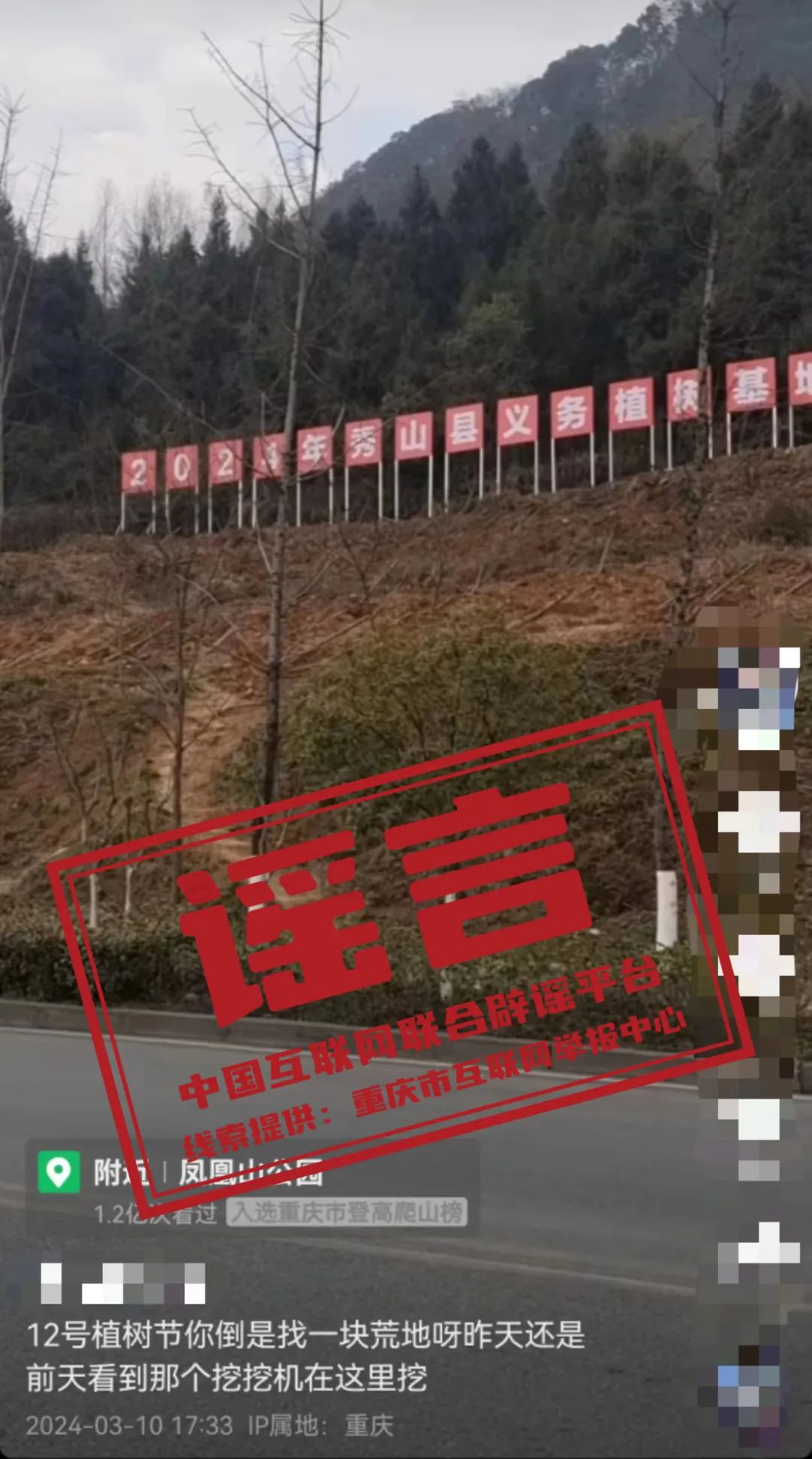 謠言 重慶市秀山縣鳳凰山公園把原有樹木挖了來辦植樹節?