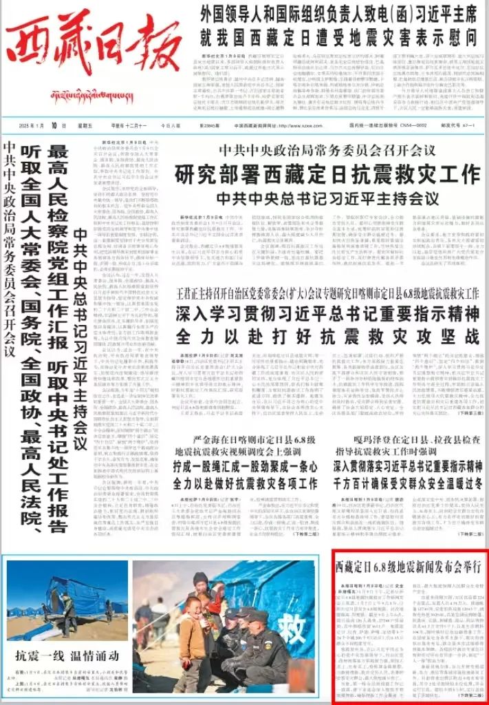 (圖為西藏日報發布地震官方數據報紙版面)