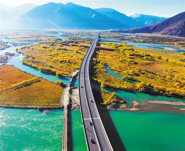 ▲俯瞰穿越雅尼國家濕地公園的最美景觀大道——西藏林芝米林機場高等級公路。林芝市持續加大雅尼國家濕地公園的保護力度,扎實推進基礎設施與旅游項目建設。扎 洛攝