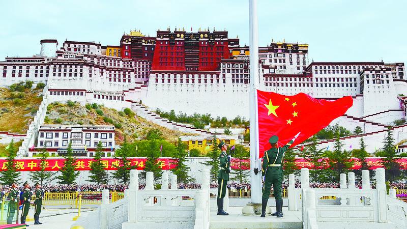 10月1日,西藏自治區慶祝中華人民共和國成立74周年“升國旗、唱國歌”儀式在布達拉宮廣場舉行。這是儀式現場。記者 旦增西旦 攝
