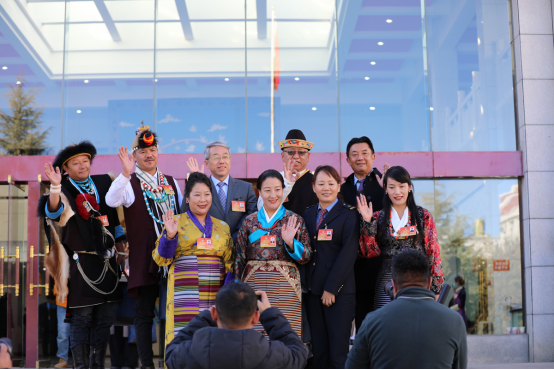 1月9日下午,政協第十二屆西藏自治區委員會第二次會議圓滿完成各項議程,勝利閉幕。圖為政協委員合影留念。記者 索朗扎西 攝