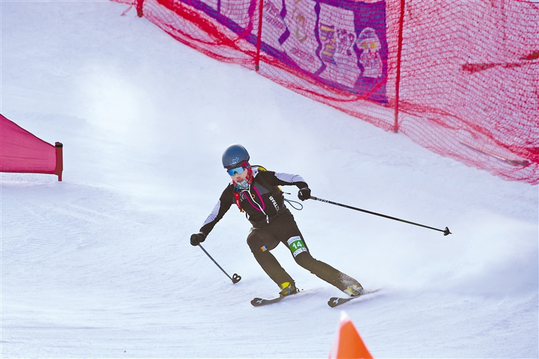 圖為獲得滑雪登山公開組女子短距離比賽銀牌的我區選手任彤在比賽中。