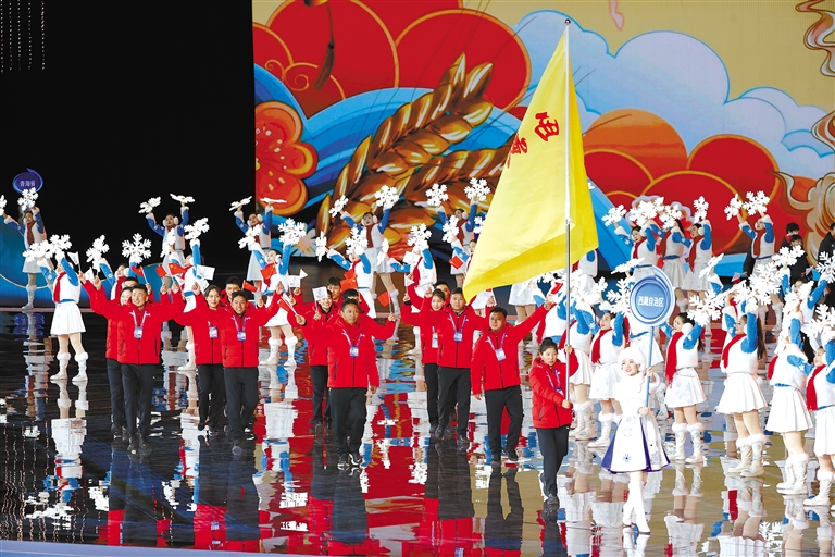 圖為西藏代表團亮相第十四屆全國冬季運動會開幕式。