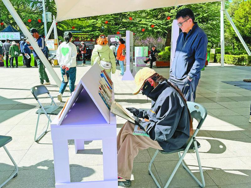 市民在活動現場閱讀喜愛的書籍。記者 盧文靜 史金茹 攝
