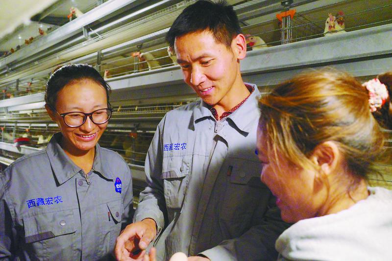 湖北省援藏工作隊引進的西藏宏農全智能化藏雞產業園項目,依托科技力量助推傳統產業轉型升級,形成了以藏雞養殖為核心,涵蓋飼料加工、雞蛋分揀包裝、有機肥生產、農產品初加工、有機種植全產業鏈運營的農業模式。(圖片均由: 張宏林 記者 武沛濤 攝)