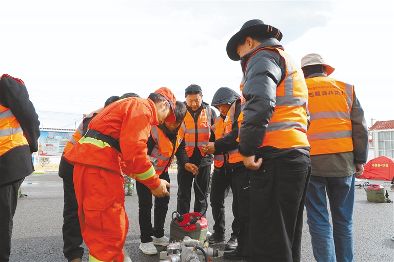 管護員開展森林滅火協同作業演練。通訊員 甄小龍 次仁多杰 攝