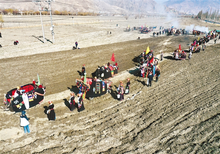 圖為山南市乃東區昌珠鎮克松村春耕春播現場。