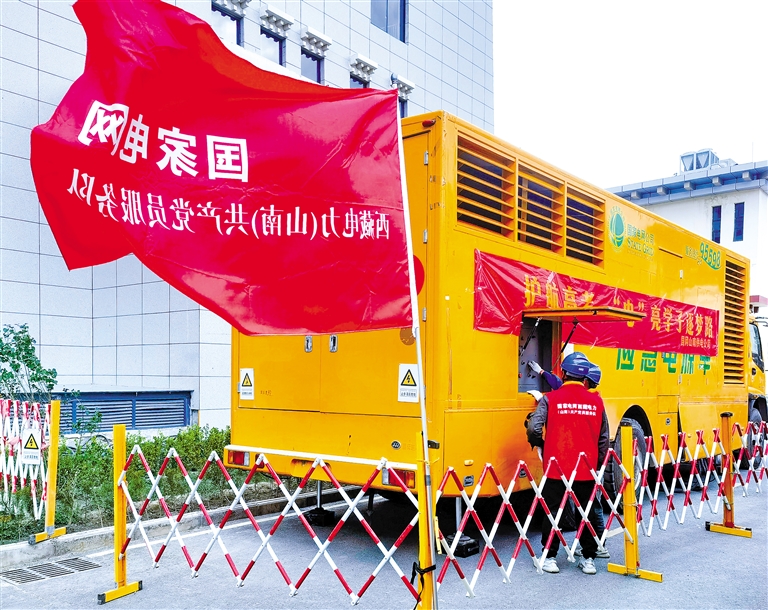 國網山南供電公司在山南市考點進行保電車的接入。通訊員 孫振華 攝