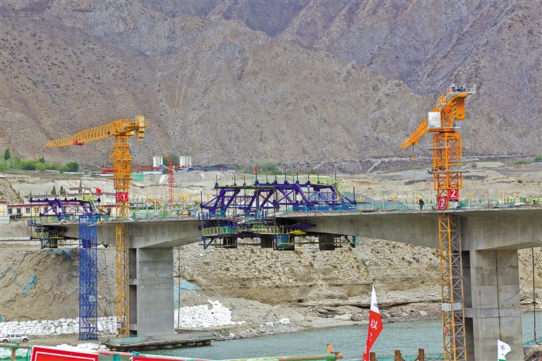 建設中的廣東援藏項目—朗縣惠州大橋。