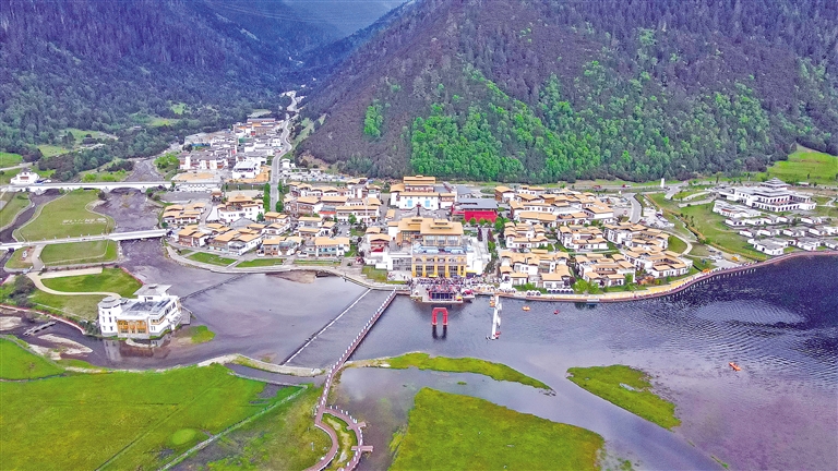 廣東省對口支援建設的巴宜區魯朗國際旅游小鎮鳥瞰圖(局部)。