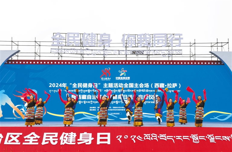 圖為2024年“全民健身日”主題活動全國主會場(西藏·拉薩)暨西藏自治區全民健身日活動啟動儀式現場。記者 旦增蘭澤 攝