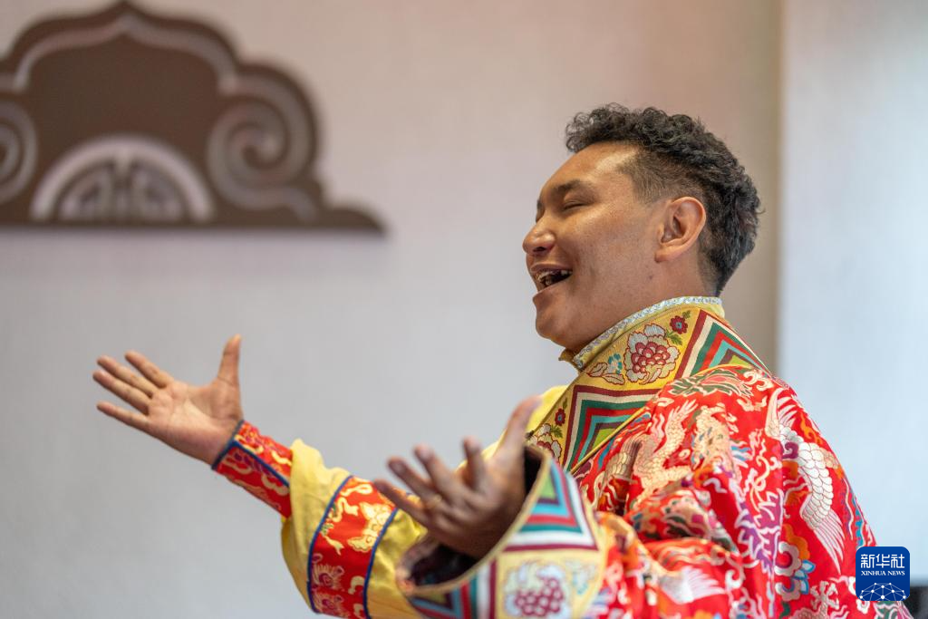 9月13日,格薩爾說唱藝人斯塔多吉在發布儀式現場表演格薩爾說唱。新華社記者 旦增尼瑪曲珠 攝