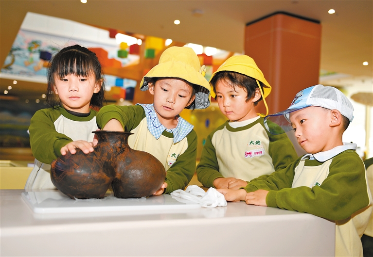圖為孩子們在觀賞陶器模型。記者 王敏 攝