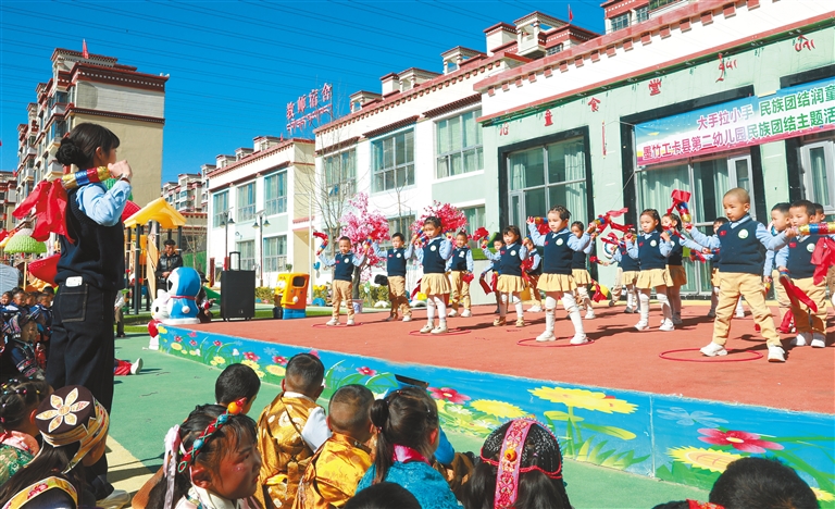 近日,墨竹工卡縣第二幼兒園舉行以“大手拉小手,民族團結潤童心”為主題的民族團結活動。此次活動使孩子們從小體會到各民族一家親,在成長初期筑牢民族團結的基石,未來成為促進民族團結、推動社會和諧發展的堅實力量。
