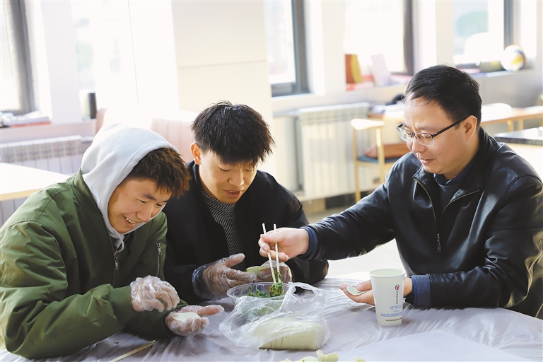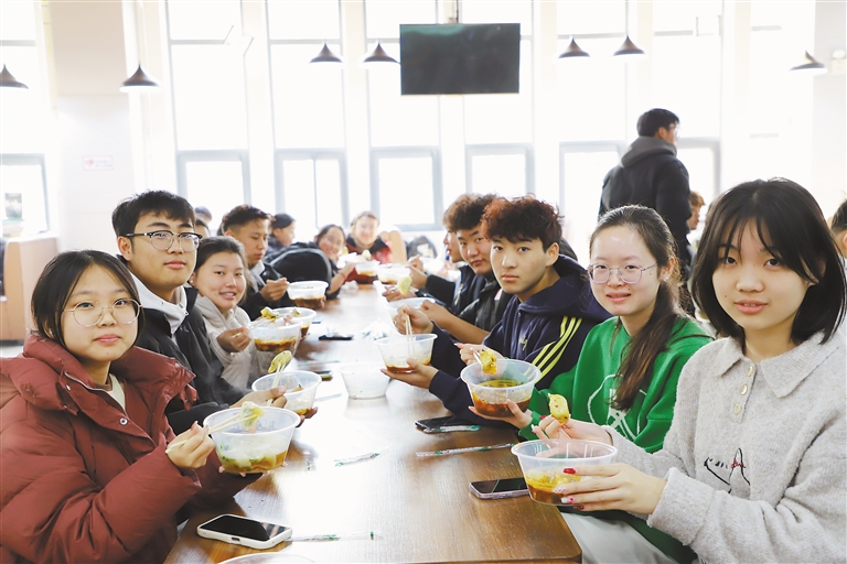 師生們一塊品嘗大家一起動手包的餃子。記者 王莉 通訊員 沈耀 攝