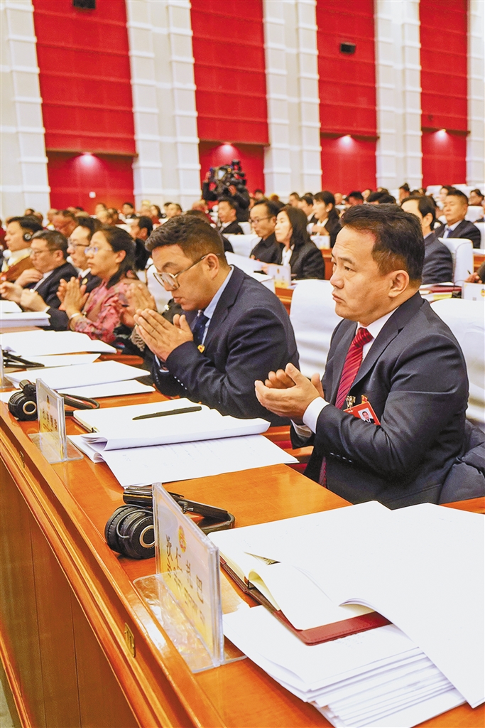 委員們認真聆聽政協(xié)常委會工作報告。記者 曲珍 丹增群培 攝