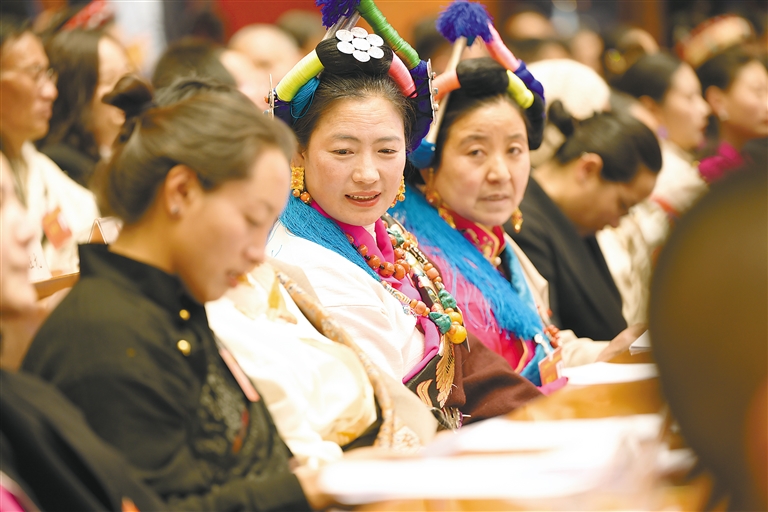 閉幕會結(jié)束后,代表們步出會場。記者 次仁平措 攝