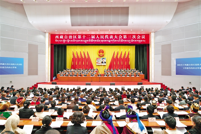 自治區(qū)十二屆人大三次會議閉幕會現(xiàn)場。記者 次仁平措 攝