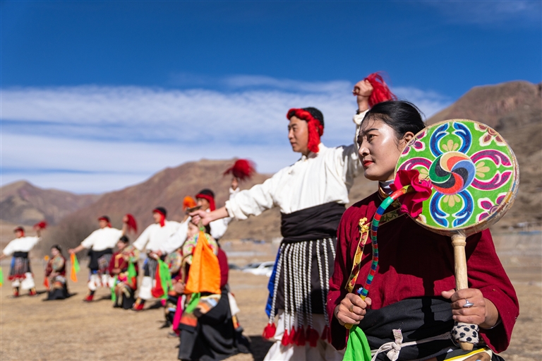 舞者們用雙腳踏出歡快節(jié)奏,與扎木念琴的琴聲、歌聲完美融合。反彈扎木念琴的技巧更是一絕,彈、唱、跳三位一體,動(dòng)作精準(zhǔn),極具觀賞性。2008年,拉孜堆諧被列為國(guó)家級(jí)非物質(zhì)文化遺產(chǎn),拉孜縣也榮獲“中國(guó)民間藝術(shù)之鄉(xiāng)”的稱號(hào)。
