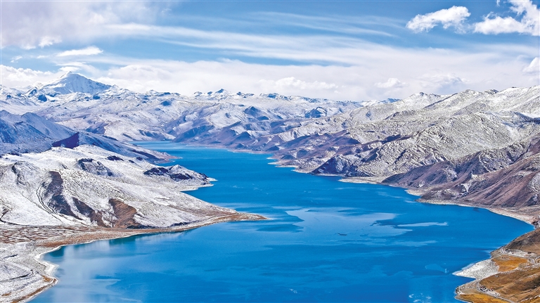 2月20日,羊卓雍錯景區(qū)雪后初晴,一片銀裝,分外美麗。