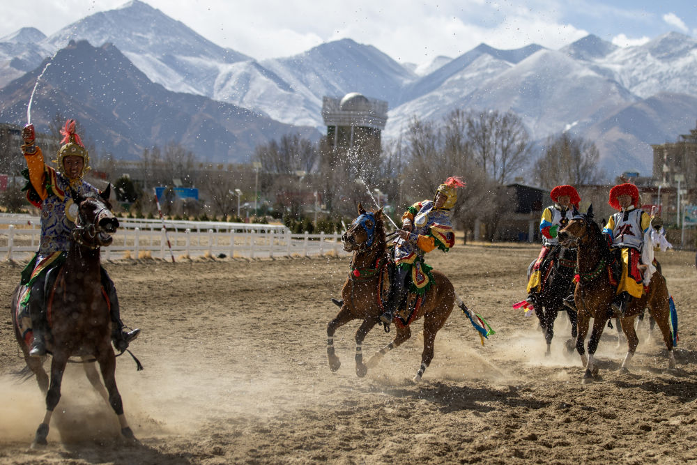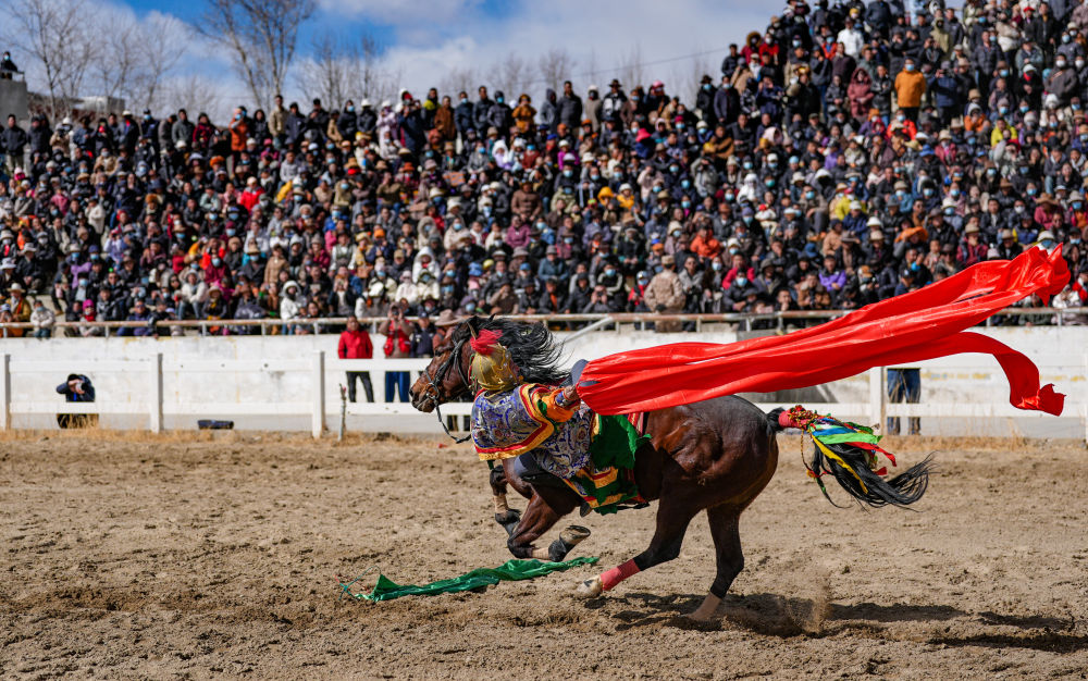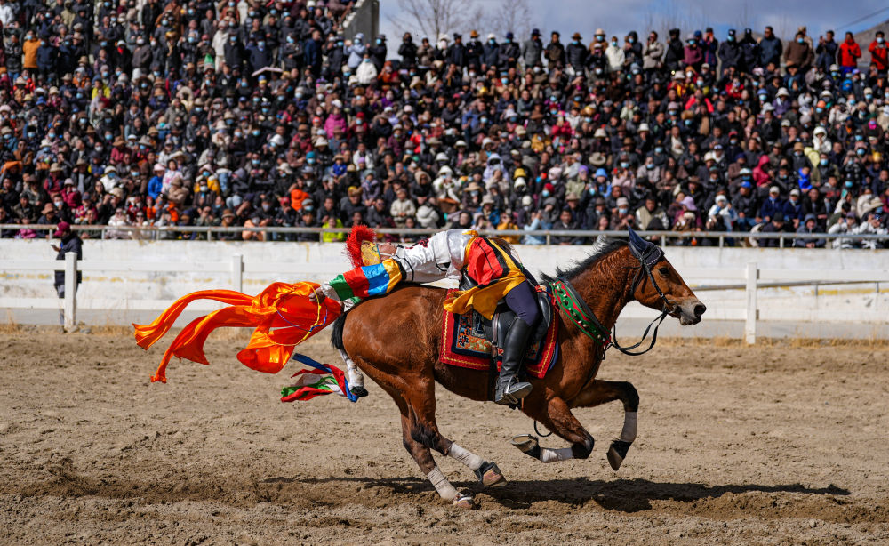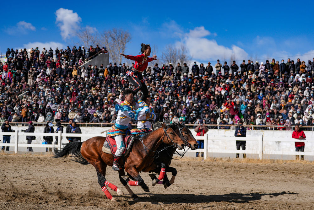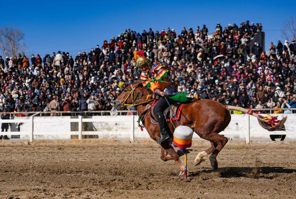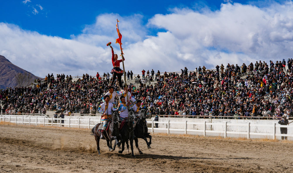 當(dāng)日,2025年藏歷新年初三民族傳統(tǒng)馬術(shù)表演暨民族賽馬活動(dòng)在拉薩市北郊賽馬場(chǎng)舉行。馬術(shù)在西藏是吉祥、勇敢和智慧的象征。騎手們用精彩表演為觀眾送上新年的祝福。
