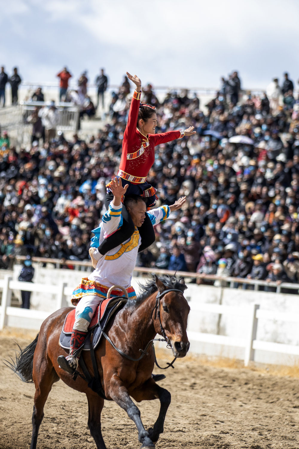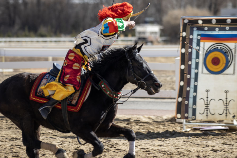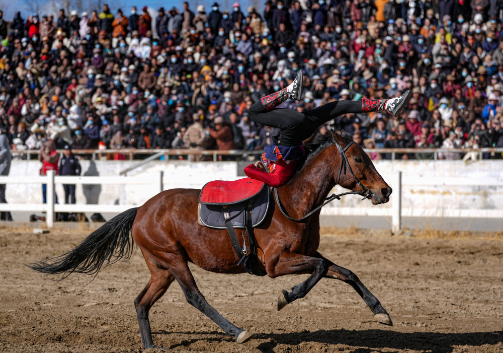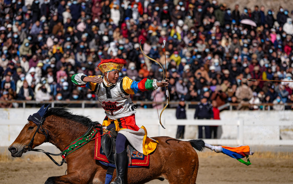 當(dāng)日,2025年藏歷新年初三民族傳統(tǒng)馬術(shù)表演暨民族賽馬活動(dòng)在拉薩市北郊賽馬場(chǎng)舉行。馬術(shù)在西藏是吉祥、勇敢和智慧的象征。騎手們用精彩表演為觀眾送上新年的祝福。