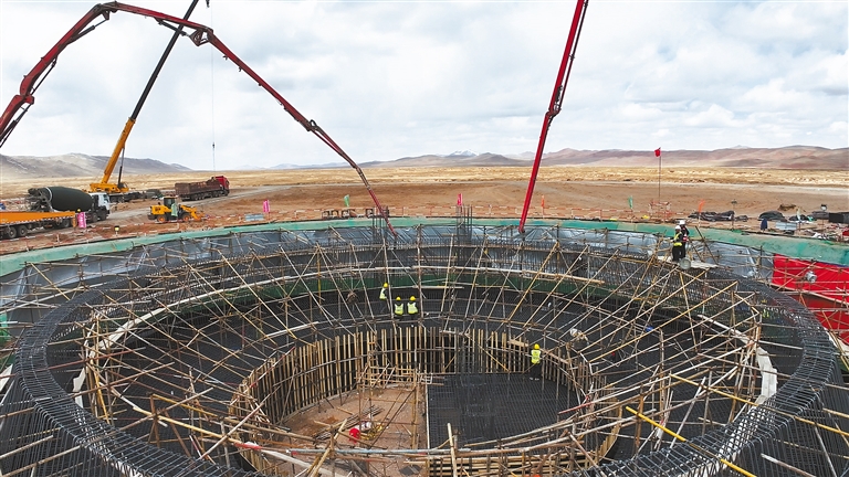 近日,西藏開投安多縣土碩100兆瓦光熱+800兆瓦光伏一體化項目迎來關鍵節點——聚光集熱塔基礎第一倉混凝土澆筑順利完成。