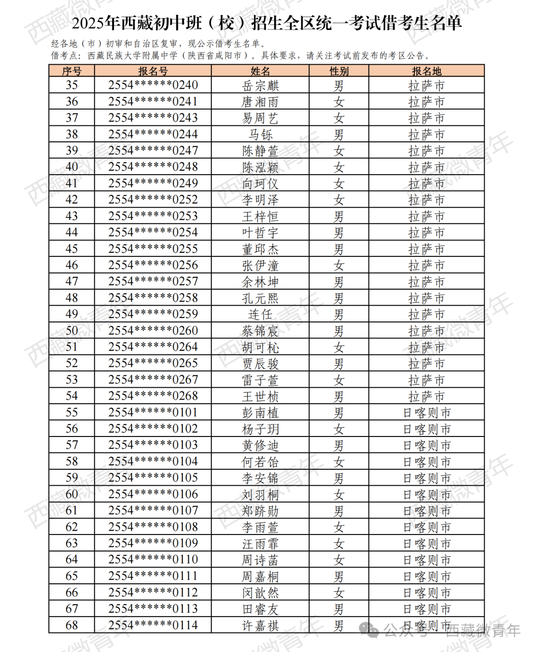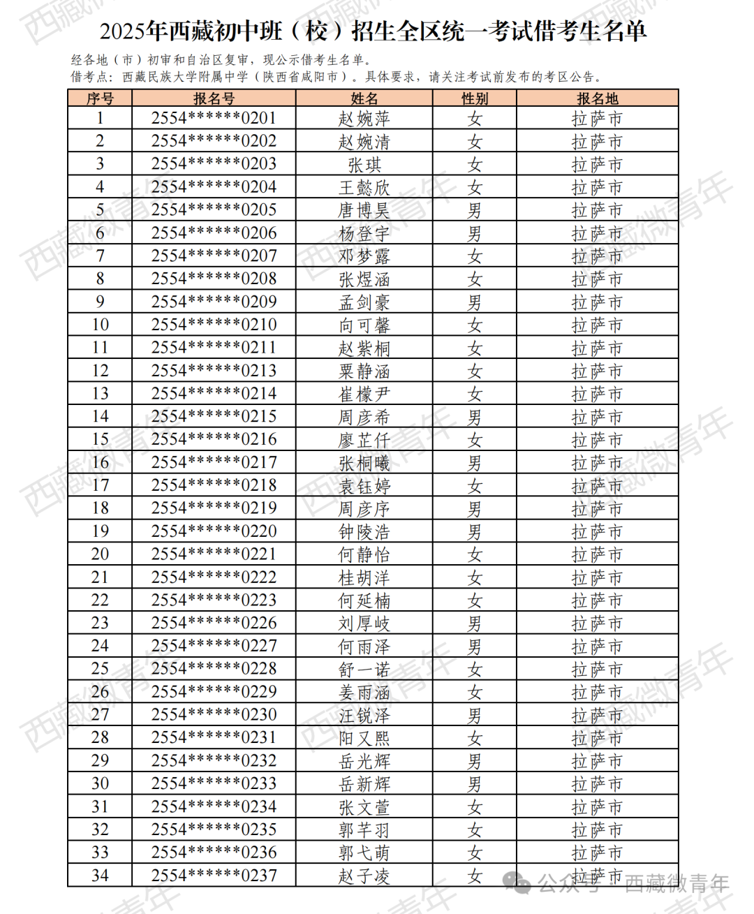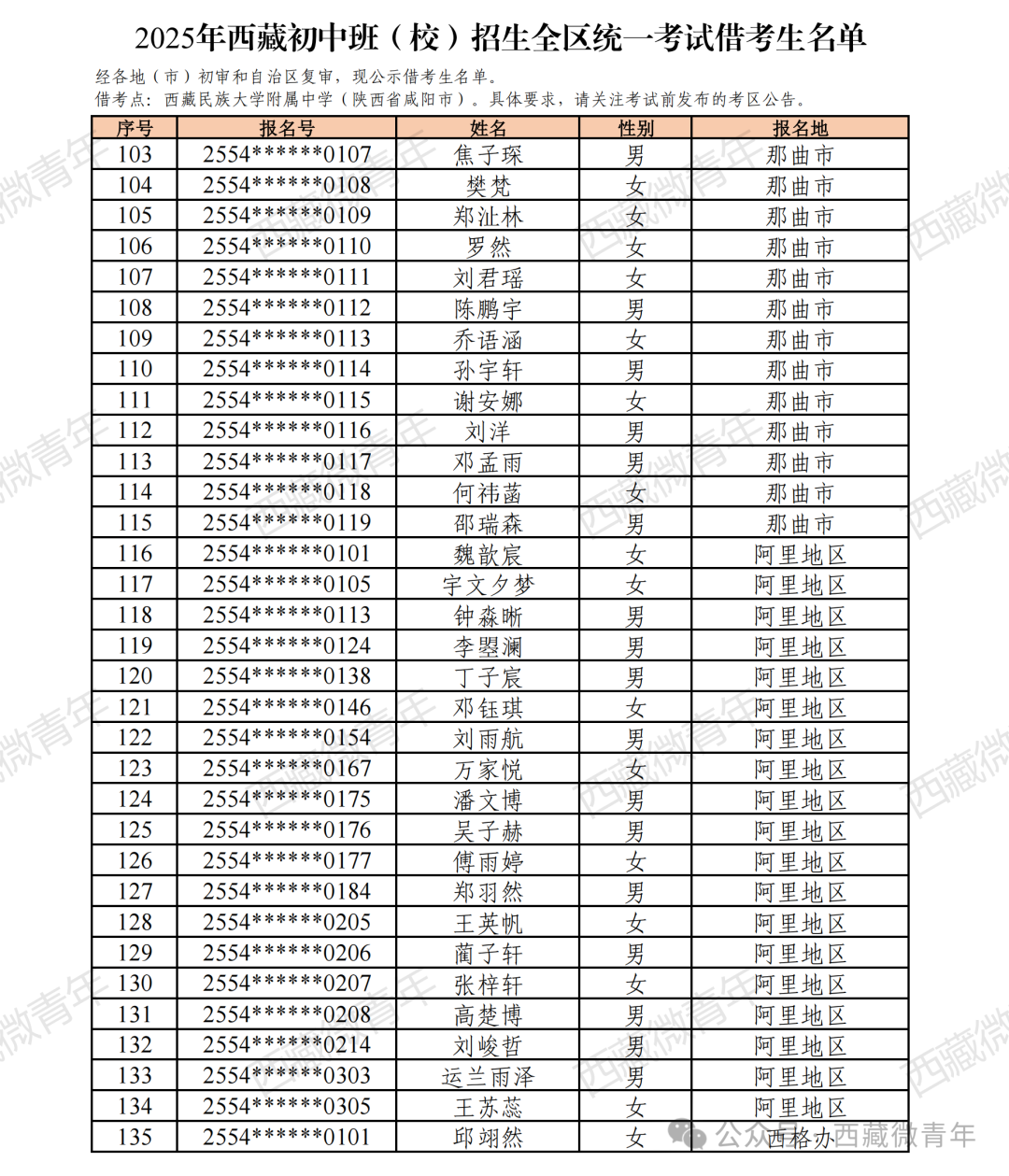 2025年西藏初中班(校)招生報名工作已結束。經各地(市)初審,自治區復審,符合借考條件的考生135人,現公示如下。