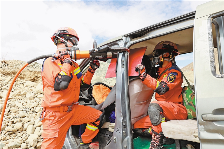 為確保演習圓滿完成,山南市消防救援支隊根據現場實際情況,設定了“T型橫渡救援、車輛破拆救援、墻體破拆救援、搜救犬廢墟搜救”4個科目,并進行多次預演熟悉,不斷優化演習程序,力求救援行動規范化、標準化。