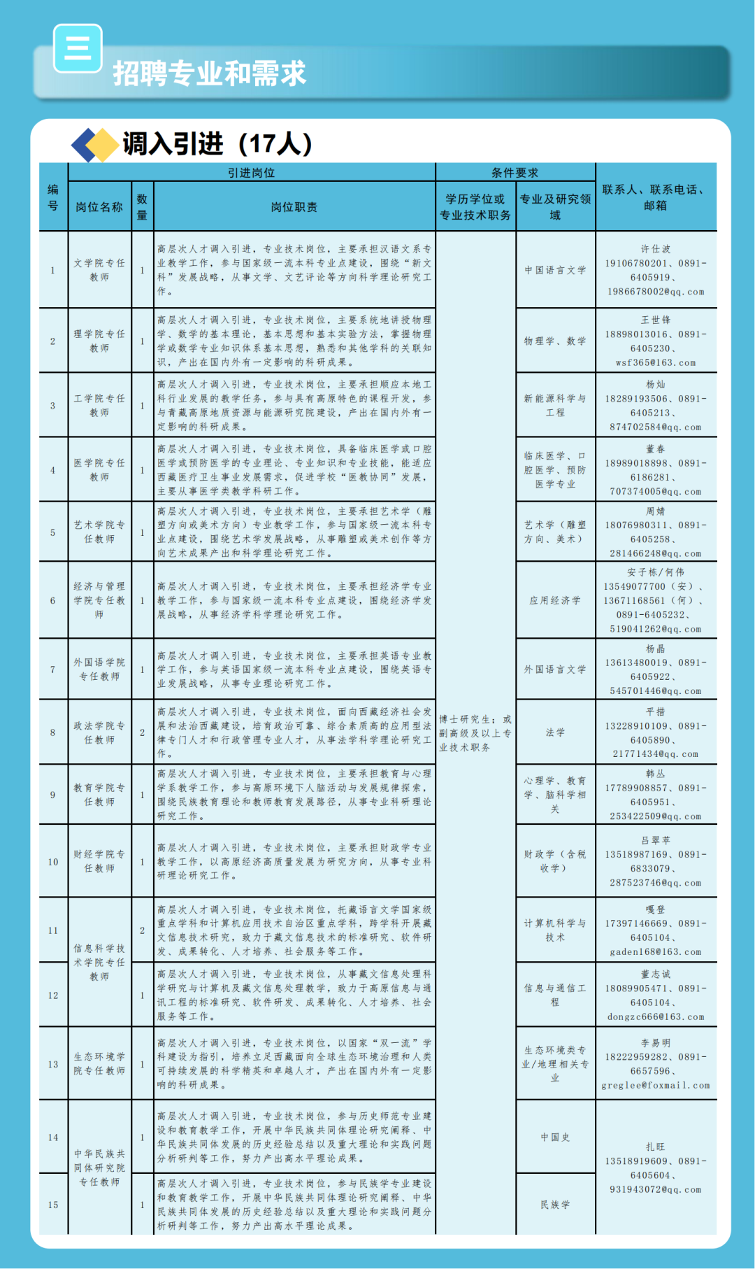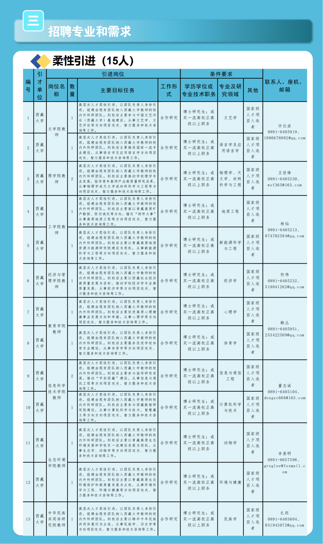 西藏大學高層次人才引進公告