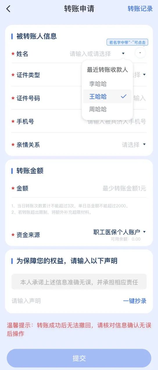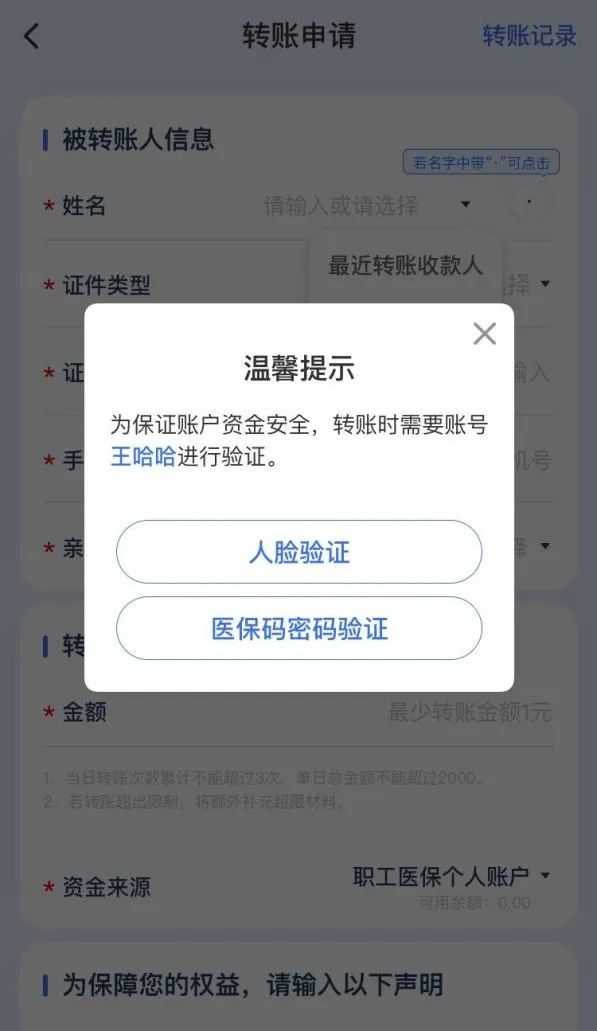 注意,使用“醫保錢包”,需要轉賬人和收款人的地區均開通了“醫保錢包”功能,才能進行轉賬。