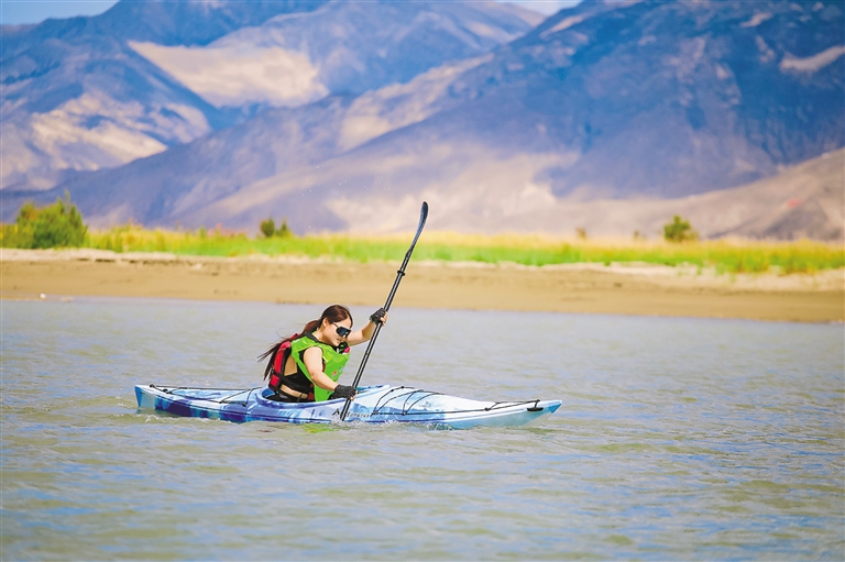 皮劃艇比賽環節,運動員在雅魯藏布江上劈波斬浪。