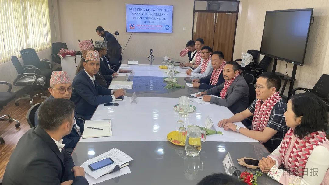 圖為中國西藏代表團拜訪尼泊爾新聞委員會。