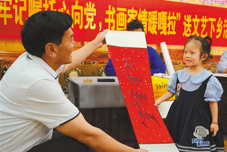 近日,林芝市文聯在巴宜區林芝鎮嘎拉村開展“牢記囑托心向黨 書畫寄情暖嘎拉”送文藝下鄉活動。書法家們揮毫潑墨,將飽含著美好祝福與深厚情誼的書法作品贈送給村民;美術家和攝影家則帶來記錄嘎啦村發展變遷、村民們幸福生活的作品。