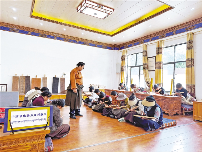 轉機始于2018年。華電西藏公司黨委選派黨員骨干進駐外沖村。經過走訪調查,他們發現了改變村莊命運的“鑰匙”——木刻技藝。村民們守著金飯碗,卻過著苦日子。駐村黨員們看在眼里、急在心里。