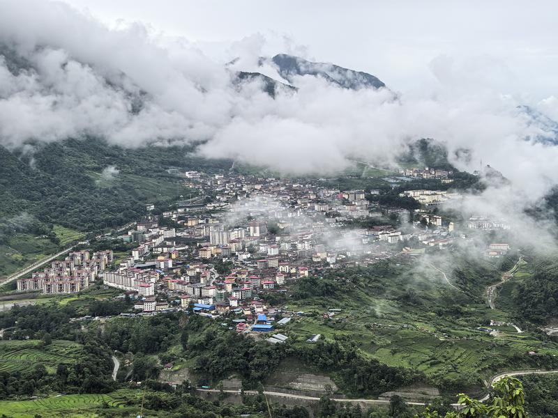 云霧籠罩下的墨脫縣城全景。記者 張思雨 攝