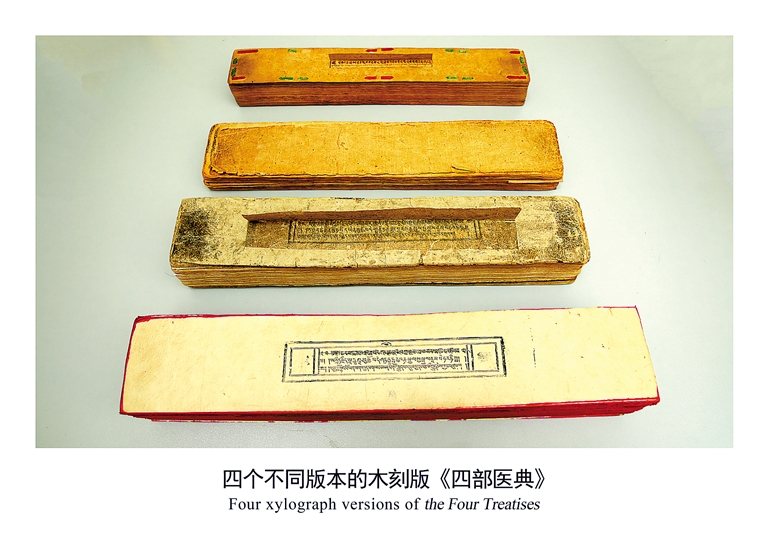 四個不同版本的木刻版《四部醫典》。自治區藏醫院文獻研究所提供