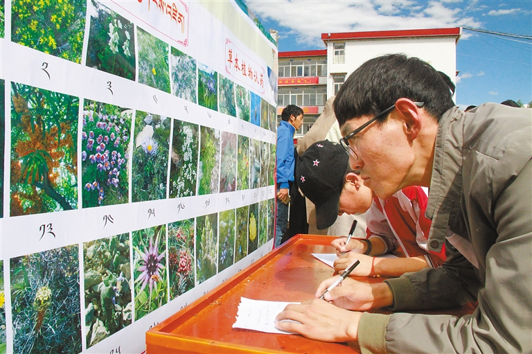 西藏藏醫藥大學學生參加藏醫藥草本植物認藥知識競賽。西藏藏醫藥大學提供