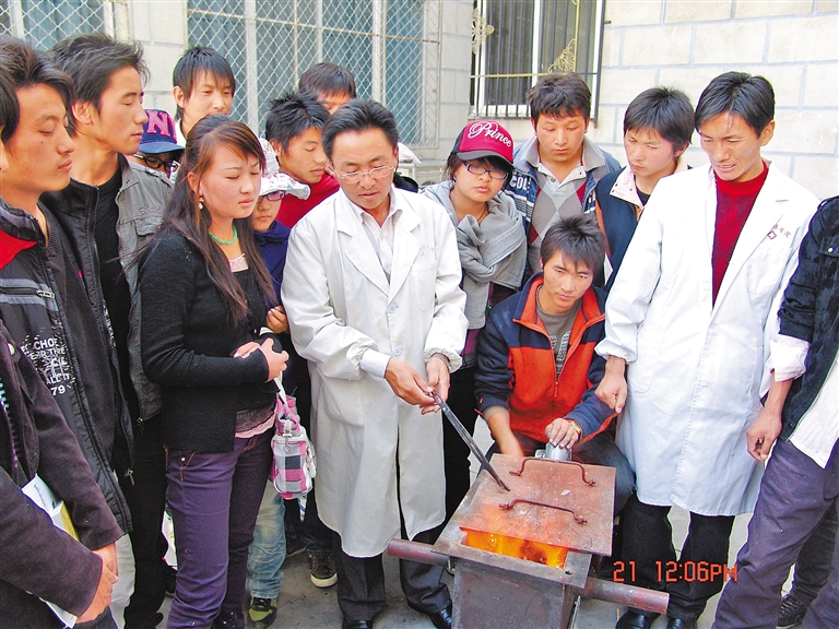 西藏藏醫藥大學開展藏藥金屬炮制和鍛灰工藝現場教學。西藏藏醫藥大學提供