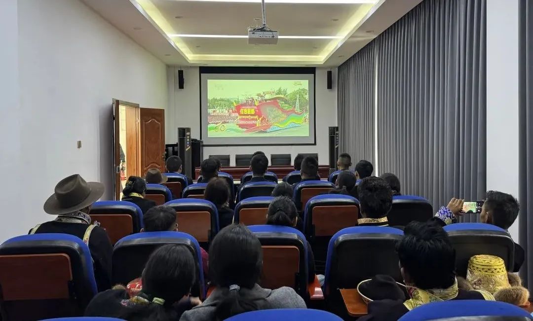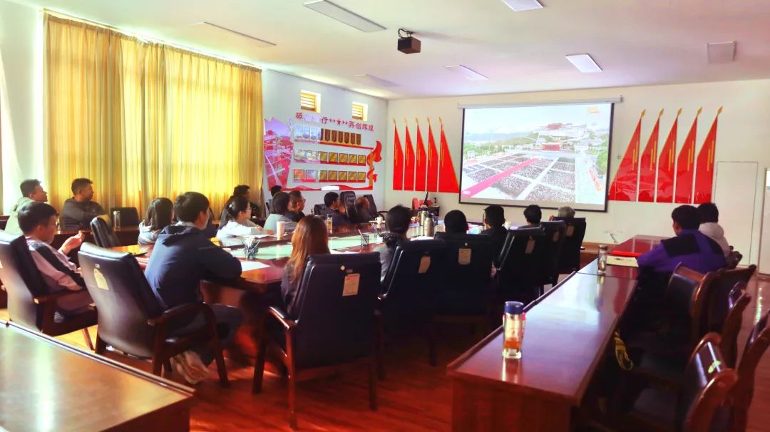 圖為西藏自治區話劇團工作人員收聽收看西藏自治區成立60周年慶祝大會盛況。(圖片由西藏自治區話劇團提供)