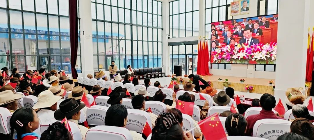 圖為山南市隆子縣玉麥鄉干部群眾收聽收看西藏自治區成立60周年慶祝大會盛況。記者 巴桑旺姆 攝