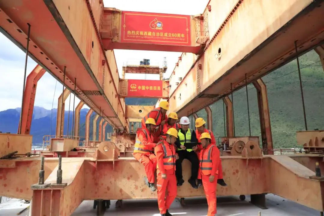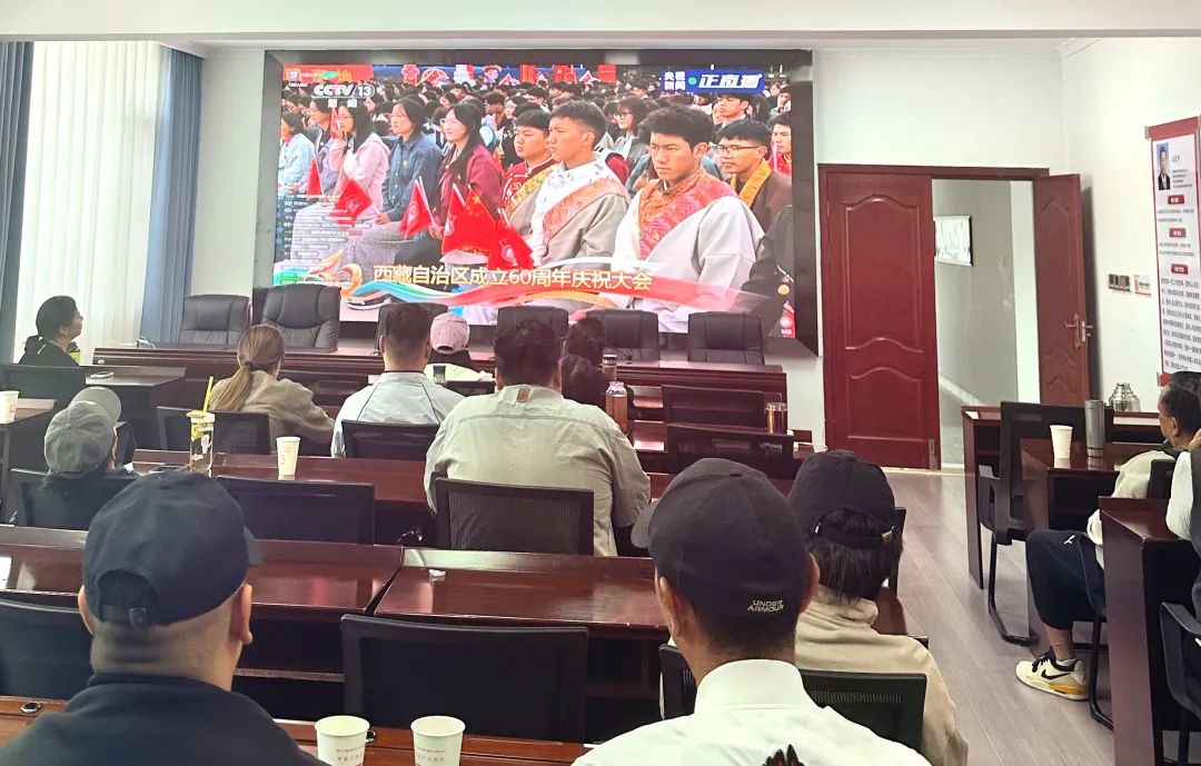 圖為中鐵四局高原鐵路項目參建員工收聽收看西藏自治區成立60周年慶祝大會盛況。通訊員 程子偉 攝