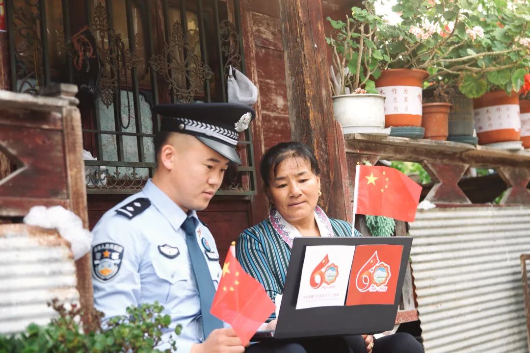 圖為墨脫邊境派出所民警與群眾收聽收看西藏自治區成立60周年慶祝大會盛況。 通訊員 呼青 攝