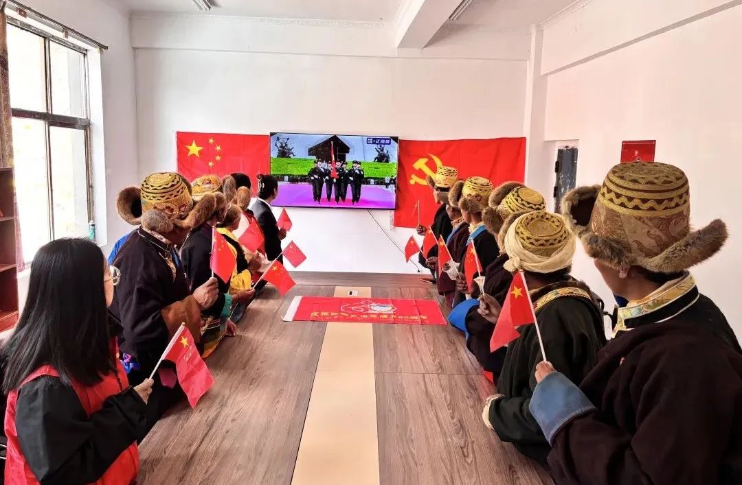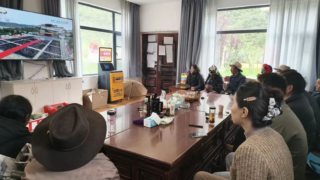 圖為拉薩市墨竹工卡縣門巴鄉巴爾卡村“兩委”班子、駐村工作隊和群眾收聽收看西藏自治區成立60周年慶祝大會盛況。記者 盧文靜 攝