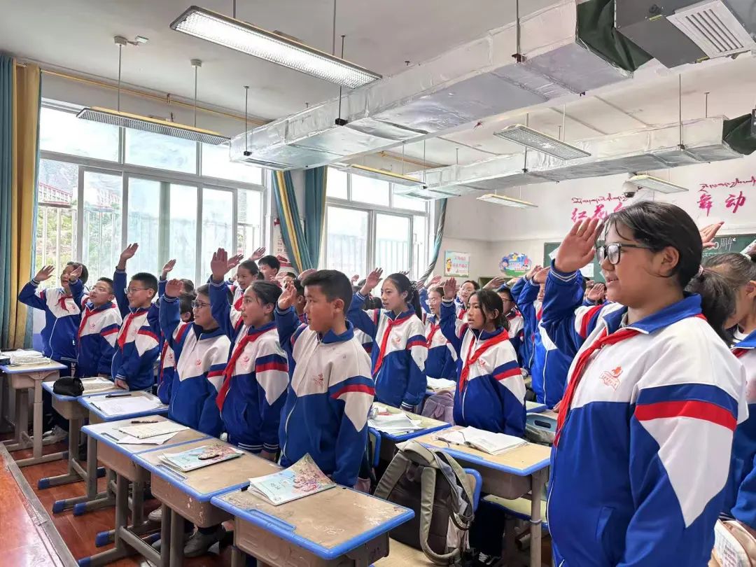 圖為昌都市實驗小學學生收聽收看西藏自治區成立60周年慶祝大會盛況。記者貢秋曲措 平措郎加攝