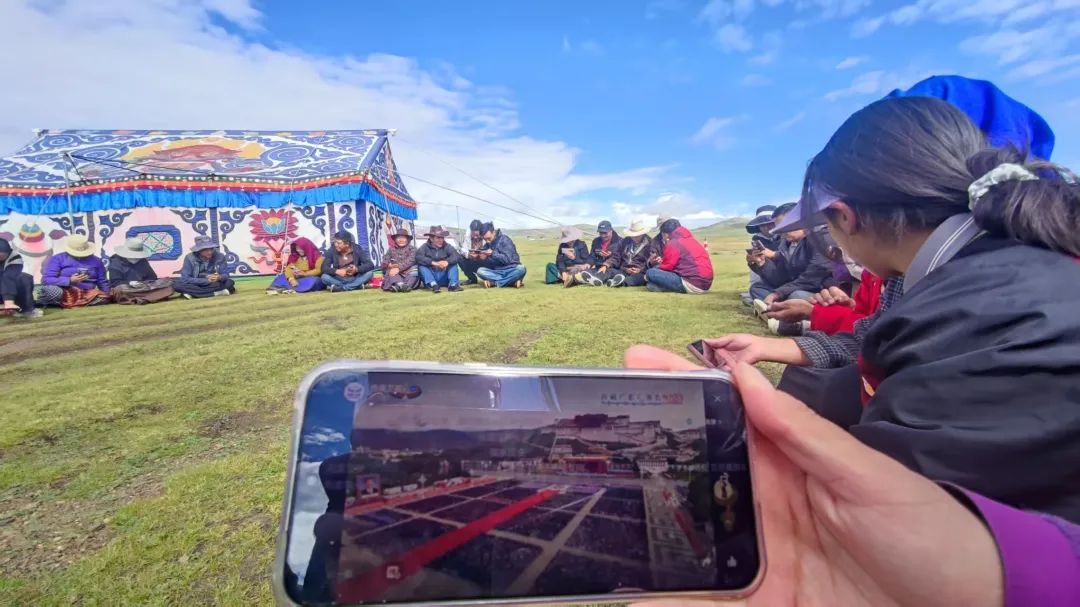 圖為阿里地區改則縣先遣鄉干部職工收聽收看西藏自治區成立60周年慶祝大會盛況。通訊員 格桑德吉攝