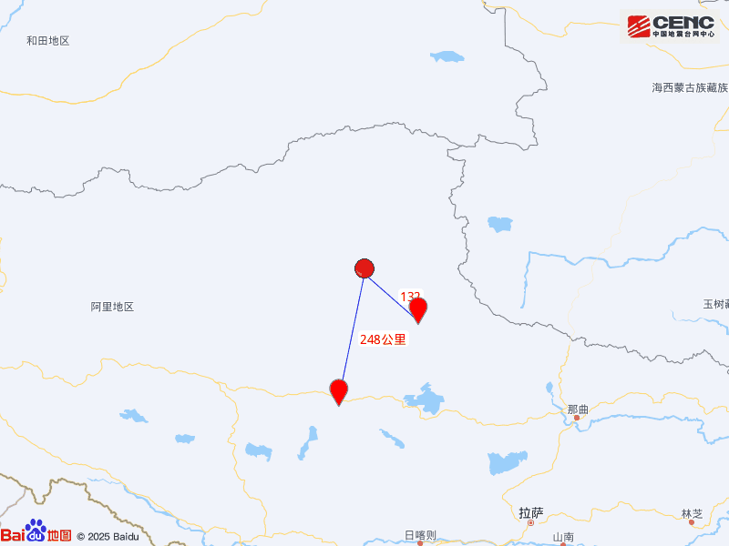 周邊縣城:震中距雙湖縣132公里、距尼瑪縣248公里,距那曲市488公里,距拉薩市576公里。