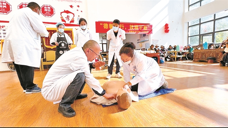 圖為工作人員在學習心肺復蘇。記者 央金 攝