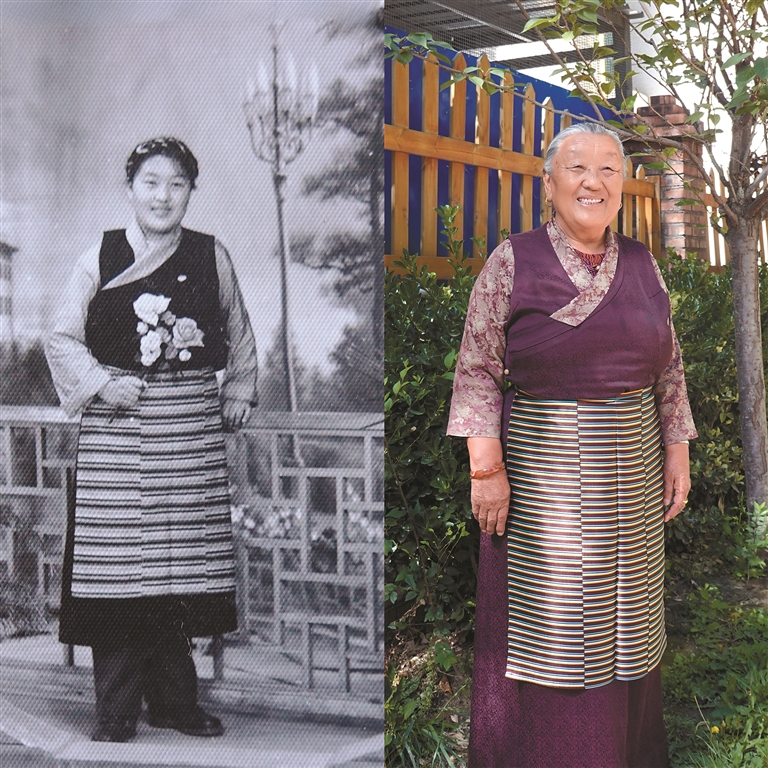 圖左為28歲的次仁卓瑪在河南進修時留影。 (由受訪者提供)圖右為79歲的次仁卓瑪在拉薩新居留影。記者 嘎娃白瑪 丹增朗賽 攝