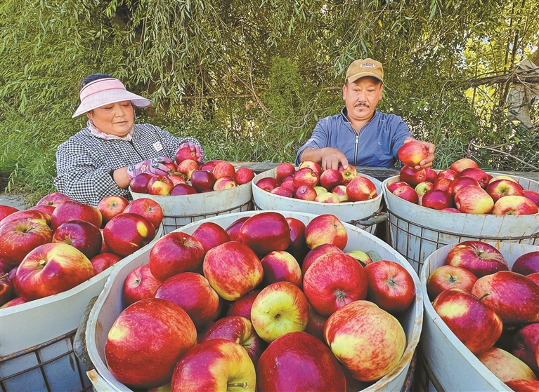 走進位于林芝市巴宜區與米林市交界處的林芝農墾嘎瑪農業有限公司蘋果種植基地,連片的果樹枝繁葉茂,紅彤彤的蘋果綴滿枝頭。得益于高原充足的日照、較大的晝夜溫差,以及清冽的雪山融水灌溉,這里的蘋果色澤鮮艷,口感脆甜多汁,深受消費者青睞。